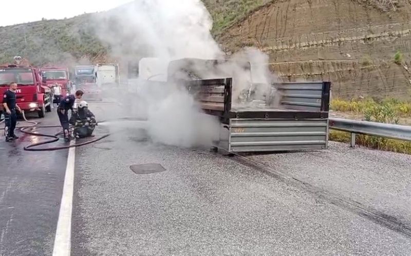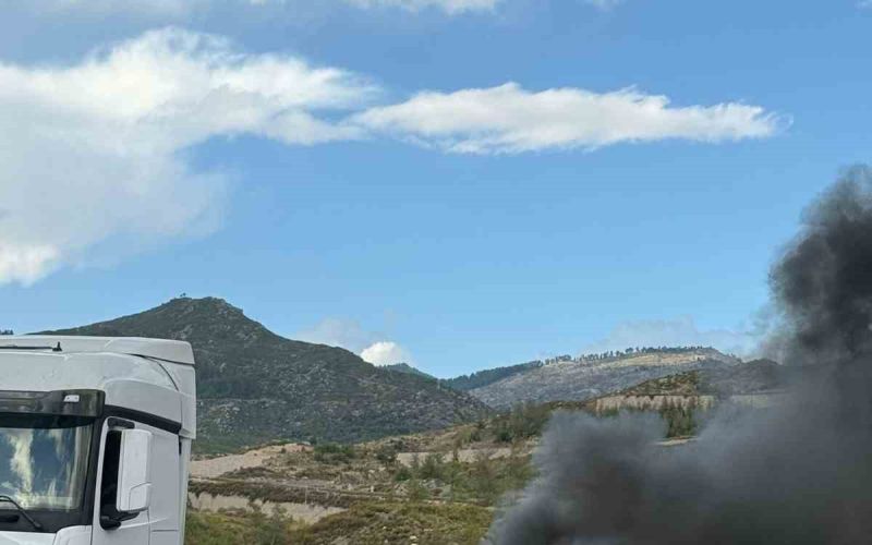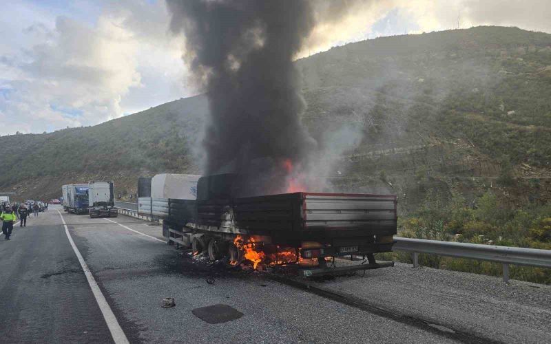 Olay, Konya-Antalya D-687 karayolunda meydana geldi. Edinilen bilgiye göre, Konya’dan Antalya istikametine seyir halindeki Ufuk A.’nın kullandığı 07 BPS 685 plaka, 07 BPM 824 dorse plakalı tırın Demirkapı Tüneli’ni geçtikten sonra dorse kısmından dumanlar yükselmeye başladı. Diğer sürücülerin uyarısı ile dorseden duman yükseldiğini gören tır şoförünün tır ile dorseyi ayırmasının ardından dorseden bir anda alevler yükseldi. Yol trafiğe kapanırken, ihbar üzerine olay yerine Antalya Büyükşehir Belediyesi İtfaiyesi Manavgat Birimi, Trafik Jandarması ve Manavgat İlçe Jandarma Komutanlığı Taşağıl Jandarma Karakolu ekipleri sevk edildi. İtfaiye ekiplerince söndürülen yangında dorse kullanılamaz hale geldi.
