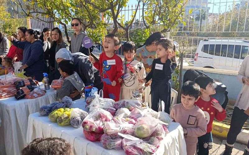 Antalya’nın Manavgat ilçesinde Manavgat Anaokulu Okul Aile Birliği tarafından okul bahçesinde ‘Manavgat Anaokulu Bahçe Pazarı’ adı altında Yerli Malı Haftası kapsamında düzenlenen panayır semt pazarını aratmadı. Tezgahlarda satılan ürünleri temin eden ve alıcı olarak da etkinliğe katılan aileler, “Gel vatandaş gel mor lahanaya gel, Param olsa da ben alsam, sadece 50 TL” diye satış yapan çocuklarıyla gurur duydu.