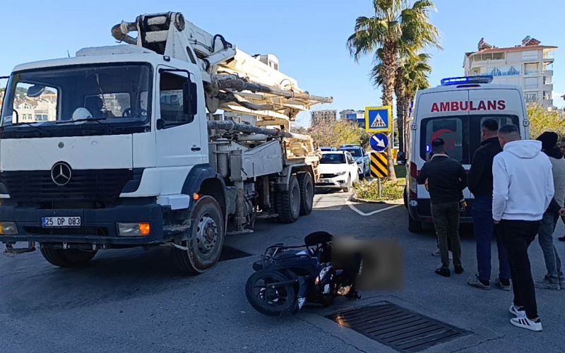 Kaza, Aydınevler Mahallesi Hasan Ali Yücel Caddesi’nde meydana geldi. Edinilen bilgiye göre, çevre yolu istikametinden 5525 Sokak istikametine seyir halinde olan Gülsüm Gündüz idaresindeki 07 BJB 081 plakalı motosiklet, Manavgat Anaokulu önündeki kavşağa geldiğinde, Sorgun Bulvarı istikametinden çevre yolu istikametine gitmekte olan Mustafa Emin Köstelli’nin kullandığı 25 DP 083 plakalı beton kamyonuna yandan çarptı.