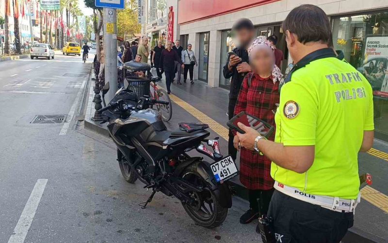 Antalya’nın Manavgat ilçesinde seyir halindeki motosikletin plakasının bandana ile kapalı olduğunu gören trafik ekibi, durdurduğu motosikletin sürücüsünün ehliyetinin olmadığı belirlendi.
