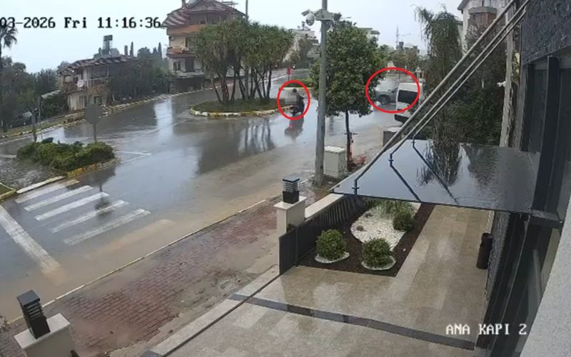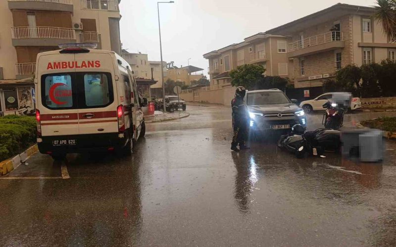 Antalya’nın Manavgat ilçesinde otomobil ile motosikletin çarpışması sonucu meydana gelen kazada motosiklet sürücüsü yaralandı. Kaza anı ise güvenlik kamerasına yansıdı.