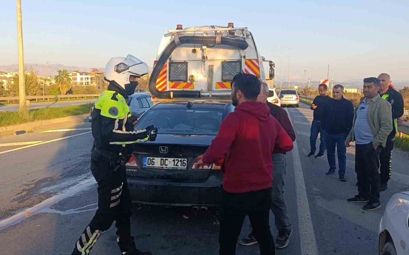 Antalya’nın Manavgat ilçesinde seyir halindeki otomobil, yol süpürme aracına arkadan çarptı. Şans eseri yaralanan kimsenin olmadığı kaza nedeniyle trafik uzun süre tek şeritten kontrollü olarak sağlandı.