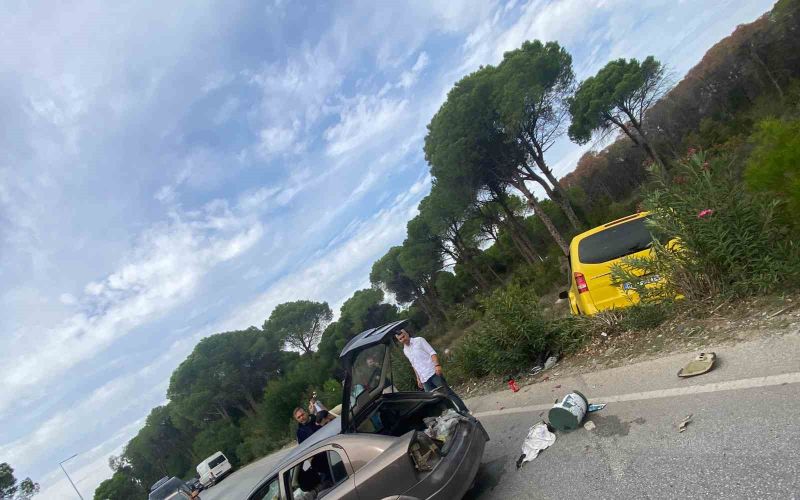 Antalya’nın Aksu ilçesinde meydana gelen kazada, kontrolünü kaybeden otomobil, ticari taksiye çarptı. 2 kişinin yaralandığı kaza anı araç kamerası tarafından anbean kaydedildi.