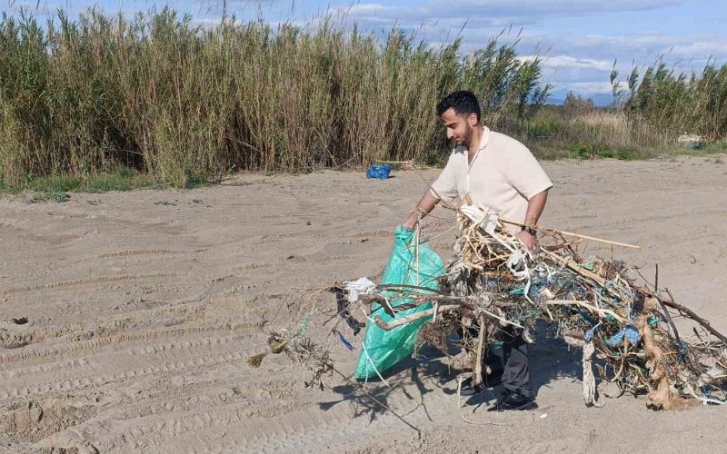 Manavgat’ta Mendirek Yarımadasında üniversite öğrencileri tarafından toplanan çöpler arasındaki balık ağı, ip ve poşetlerden oluşan çöp yığını görenleri hayrete düşürdü.