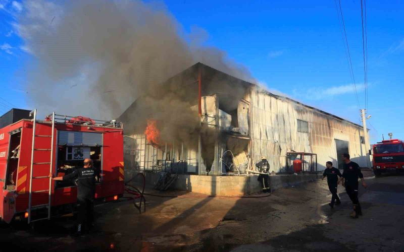Antalya’da mobilyaları üretimi yapan bir tesiste yangın çıktı. Alevlerin sardığı işletmenin bitişiğinde bulunan iş yeri sahipleri, yangının kendi iş yerlerine de sıçradığını düşününce büyük panik yaşandı.