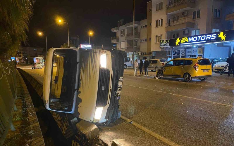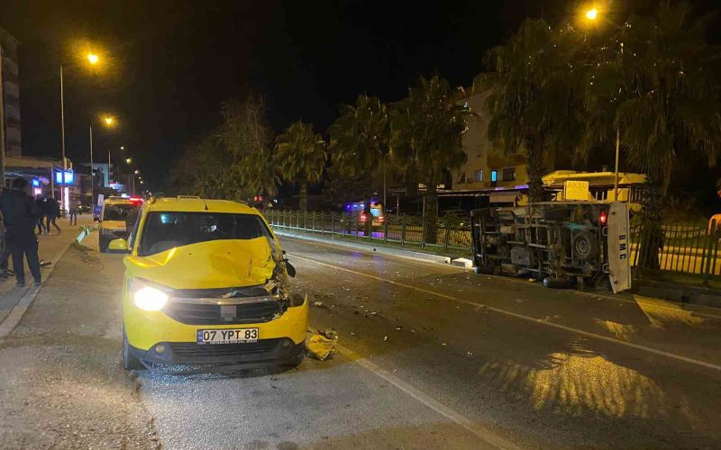 Serik’te ticari taksi ile kamyonet çarpıştı: 2 yaralı