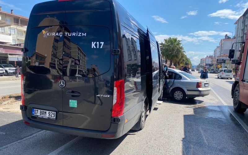 Antalya’nın Serik ilçesinde vip tur minibüsü ile otomobilin karıştığı kazada 2 kişi yaralandı.