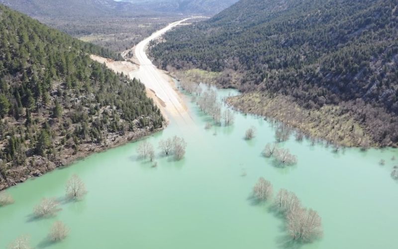 Şubat ayında etkili olan yoğun yağışların ardından Antalya ile Konya’yı bağlayan Taşağıl, Gembos, Derebucak ve Beyşehir güzergahındaki yeni Antalya-Konya kara yolunun bazı kesimleri su taşkınları nedeniyle kapandı. Yaklaşık 4-5 kilometrelik bölümde su seviyesi 1 metreden 5 metreye kadar ulaştı. Haftalardır ulaşıma kapalı olan Sobuca mevkiinde suların tamamen çekilmesinin ardından Karayolları ekipleri yolda inceleme yaparken, kontrollerde yolda herhangi bir olumsuz duruma rastlanmadı. Kara yolunda ulaşım dün öğle saatlerinde Antalya ve Konya yönlerinden karşılıklı olarak trafiğe açıldı. Trafiğe açılan yol havadan görüntülendi.