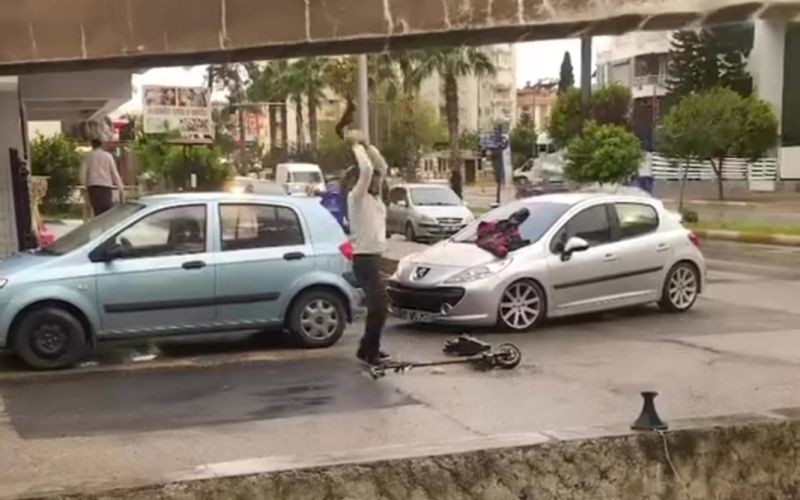 Olay, Muratpaşa ilçesi Meydankavağı Mahallesi Perge Caddesi’nde meydana geldi. Edinilen bilgiye göre, cadde üzerinde elektrikli scooter ile seyir halindeki bir vatandaş scooterı arızalanınca önce sorunu çözmek için bir süre uğraştı. Ancak sürekli arızalandığı öğrenilen scooterı tekrar çalıştıramayan vatandaş sinirlenince eline geçirdiği bir taş parçası ile scooterı parçalamaya başladı. Çevredeki vatandaşların şaşkın bakışları arasında şahsın scooterı taşla parçaladığı o anlar cep telefonu kamerasına saniye saniye yansıdı.