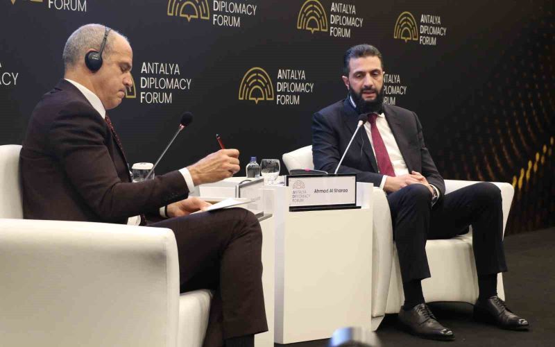 Suriye Cumhurbaşkanı Ahmed Şara, Cumhurbaşkanı Recep Tayyip Erdoğan’ın himayesinde, Türkiye Cumhuriyeti Dışişleri Bakanlığı ev sahipliğinde bu yıl 5’incisi düzenlenen Antalya Diplomasi Forumu’nda açıklamalarda bulundu.
