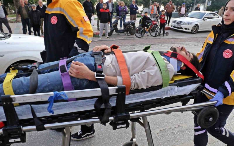 Kaza, dün saat 17.00 sıralarında Muratpaşa ilçesine bağlı Deniz Mahallesi Konyaaltı Caddesi üzerinde meydana geldi. Edinilen bilgiye göre, Ahmet E. (46) idaresindeki 07 T 3189 plakalı ticari taksi sola dönüş yapacağı sırada karşı yönden gelen Zekeriya K.’nın (19) kullandığı 07 CHE 738 plakalı motosikletle çarpıştı. Çarpmanın etkisiyle motosiklet sürücüsü ile arkasındaki ismi öğrenilemeyen genç yola savruldu. Motosiklet ise sürüklenerek park halindeki 07 AAY 020 plakalı aracın altına girdi. Çevredekilerin ihbarı üzerine olay yerine polis, itfaiye ve sağlık ekipleri sevk edildi. Sağlık ekipleri, yaralanan motosikletteki iki genci, ilk müdahalelerinin ardından ambulansla hastaneye götürdü.