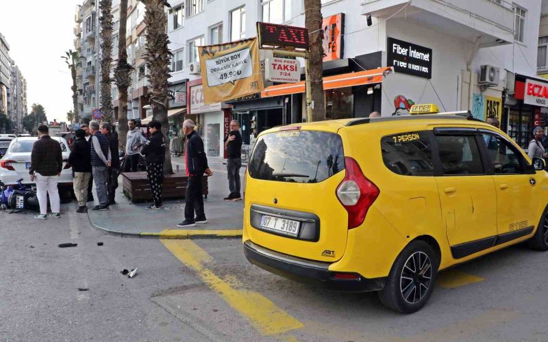 Antalya’da taksi ile çarpışan motosikletteki 2 genç yaralandı. Kaza anı ise güvenlik kamerasına anbean yansıdı.
