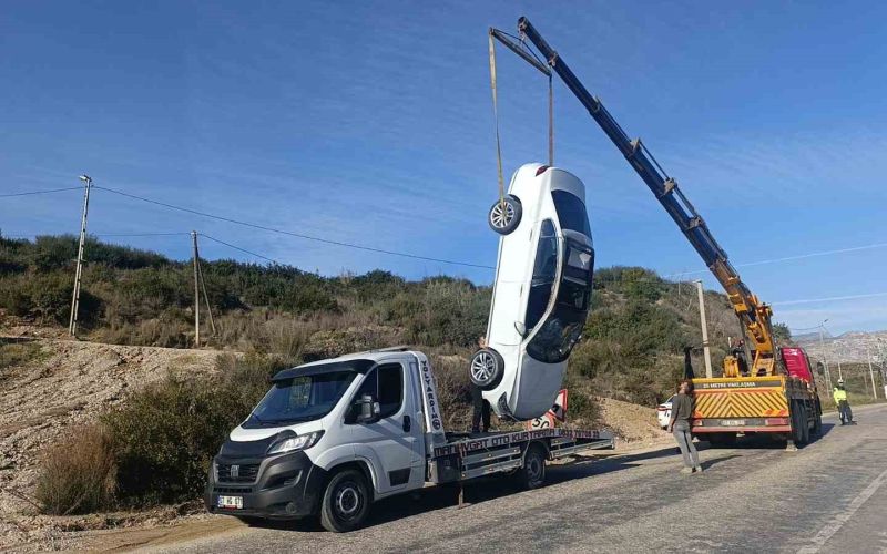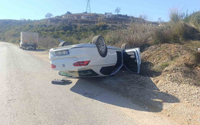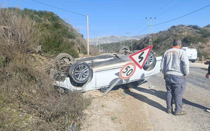 Antalya’nın Manavgat ilçesinde yol kenarındaki tümseğe çarparak ters dönen otomobilin sürücüsü yaralandı.