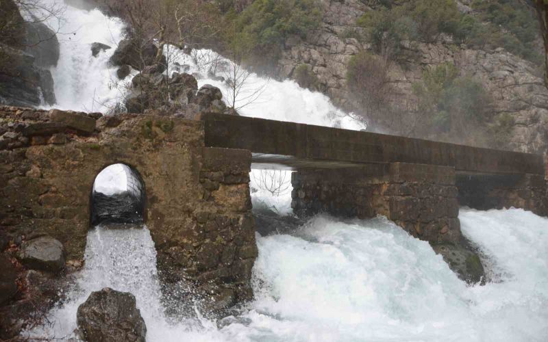 Uzun süredir kuraklık nedeniyle yaz aylarında tamamen kuruma noktasına gelen Üzümdere Irmağı, yağışlarla birlikte yeniden hayat bulurken, vadideki birçok doğal su kaynağı da coşarak şelaleler oluşturdu. Toroslar’ın sarp yamaçlarından akan suların oluşturduğu şelaleler görsel şölen sundu.