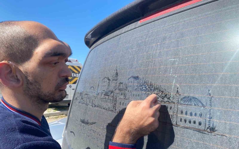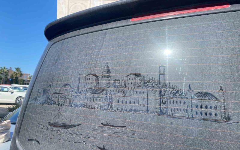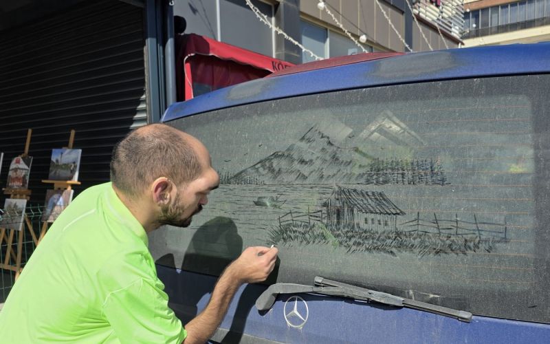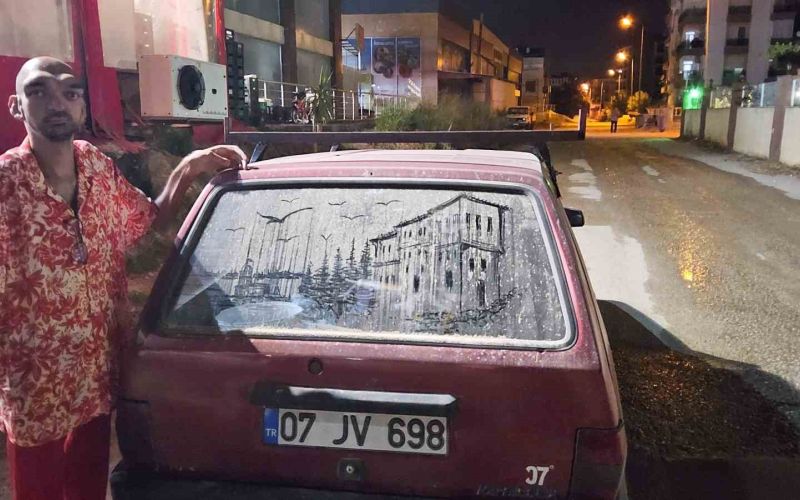 Tozlu araç görünce dayanamıyor, camları sanat eserine dönüştürüyor