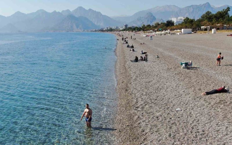 Kasım ayının ortalarında Türkiye’nin birçok noktasında karla mücadele edilirken, turizmin başkenti Antalya’da yazdan kalma günler yaşanmaya devam ediyor. Sıcak havayı fırsat bilen kent sakinleri ve turistler Konyaaltı Sahili’nde denize girmenin keyfini yaşadı.