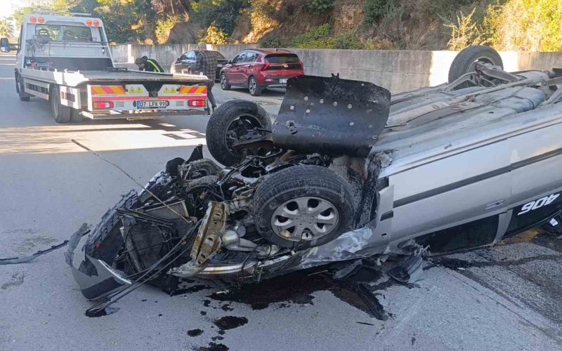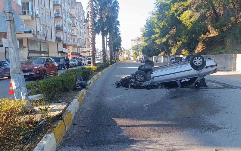 Virajı alamayan otomobil refüjdeki aydınlatma direğine çarpıp takla attı: 2 yaralı