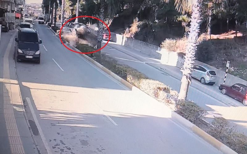Antalya’nın Manavgat ilçesinde seyir halindeki otomobilin virajı alamayarak refüjdeki aydınlatma direğine çarpıp devrilmesi sonucu meydana gelen kazada 2 kişi yaralandı. Kaza anı güvenlik saniye saniye yansıdı.