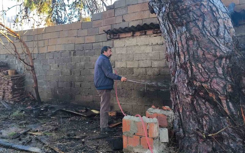 Yangının eve sıçramaması için alevlere hortumlarla müdahale ettiler