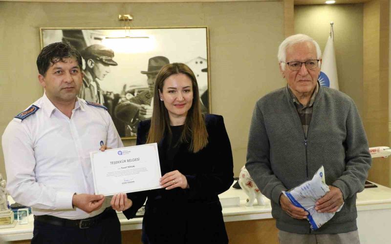 Antalya Büyükşehir Belediye Başkanlığı’na gelen İbrahim Gedik’e, çanta ve içinkiler Büyükşehir Başkan Vekili Büşra Özdemir tarafından teslim edilirken, şoföre de teşekkür belgesi verildi.