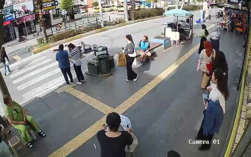 Çarpmanın şiddetiyle yola savrulan anne ve kızının yardımına çevredeki vatandaşlar koşarken, kendisi de yola savrulan motosiklet sürücüsü ayağa kalktıktan sonra çevredekilerin şaşkın bakışları altında motosikletine binerek olay yerinden uzaklaştı. Kazada yaralanan anne ve kızı 112 sağlık ekiplerinin olay yerindeki müdahalesinin ardından ambulansla hastaneye kaldırılırken hayati tehlikelerinin bulunmadığı bildirildi.
