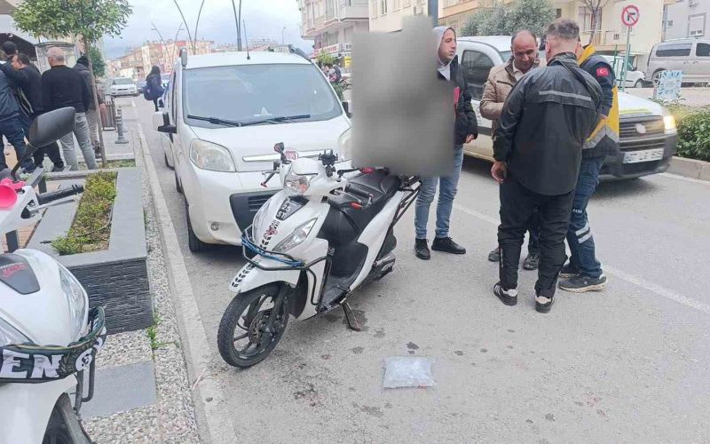 Antalya’nın Manavgat ilçesinde yaya geçidinden geçenlere yol vermek için duraklayan motosiklete, hafif ticari araç arkadan çarptı.
