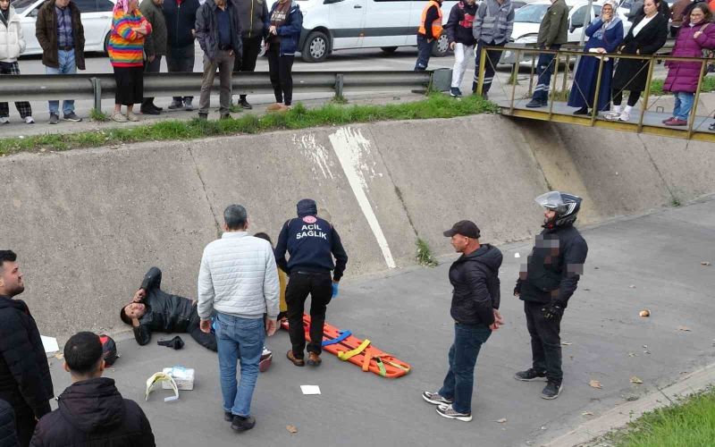 Antalya’da yayaya yol vermek için duran motosiklet sürücüsü arkadan gelen aracın çarpması sonucu savrularak kanala uçtu. Yaralı genci vatandaşlar ve itfaiye ekipleri yaklaşık 3 metrelik kanaldan çıkardı.