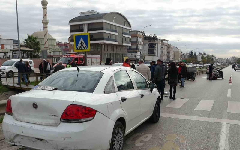 Antalya’da yayaya yol vermek için duran motosiklet sürücüsü arkadan gelen aracın çarpması sonucu savrularak kanala uçtu.